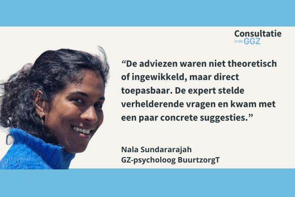 GZ-psycholoog Nala Sundararajah stelde via de pilot van Akwa GGZ een vraag aan een expert en merkte hoe waardevol het is om iemand van buiten de organisatie mee te laten denken in het behandelproces.