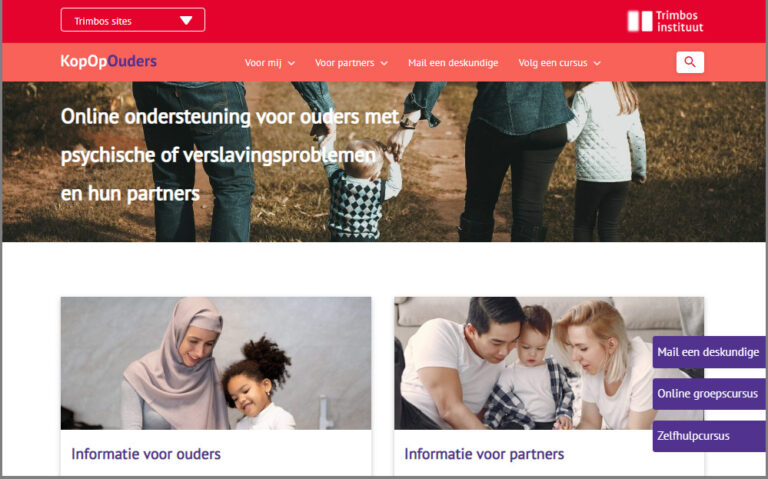 22  juni 2022- In Nederland voeden meer dan 400.000 ouders met psychische en/of verslavingsproblemen hun kinderen op. Ruim 14 jaar geleden ontwikkelde het Trimbos-instituut KopOpOuders.nl, een website met opvoedondersteuning voor deze ouders en hun partners. Afgelopen maanden is er hard gewerkt aan bijvoorbeeld het herschrijven van de tekst op de website, in een nauwe samenwerking met (zorg)professionals en ouders zelf. Vandaag is de nieuwe website live!